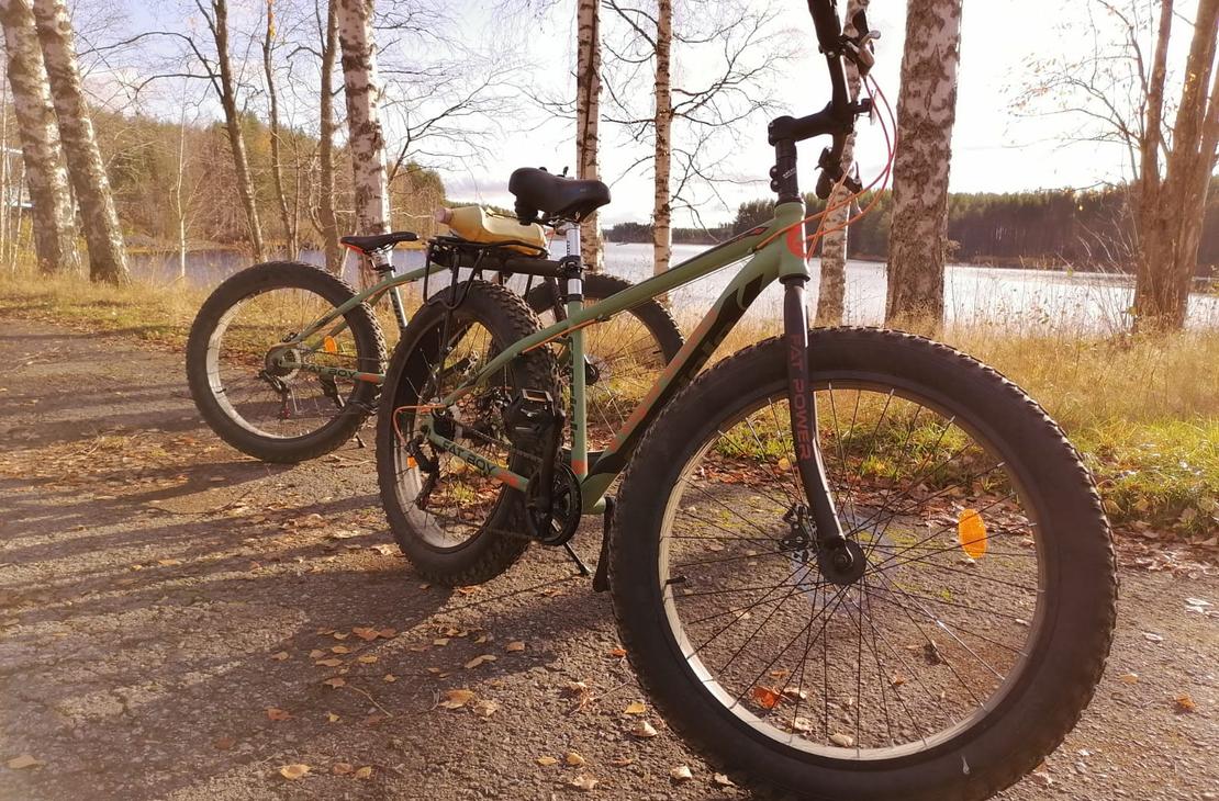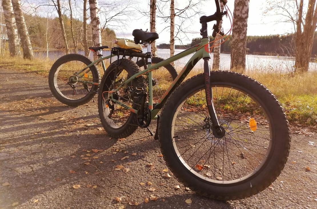 Petkeljärvi's fat bikes are simple 7-speed, with 26" tires and an M-size frame, which are best suited for first-time riders who want to test out what it's like to ride a fat bike. Please note that cycling is not recommended on the national park trails, but you can pedal to Möhkö on a fat bike.